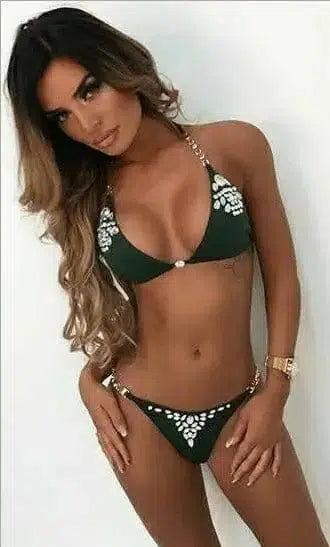 Γυναίκες Glitter Rhinestone Bikini Set Push Up Bra Halter