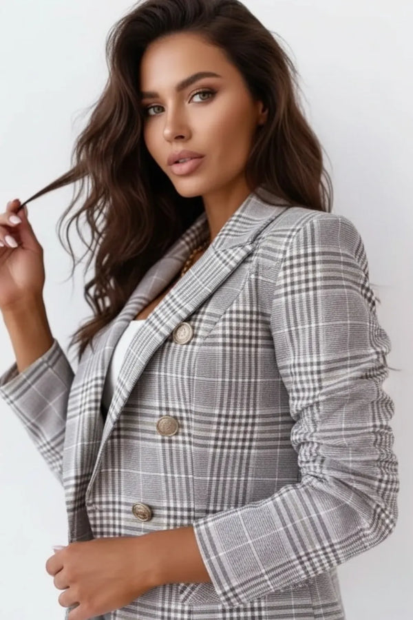 Γυναίκες Φθινόπωρο Top χαλαρό μακρύ μανίκι καρό Blazer
