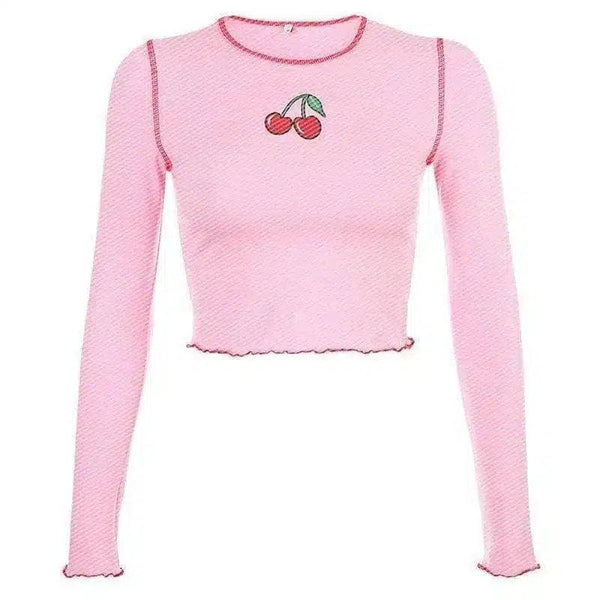 Γυναικείο μακρυμάνικο Crop Top με σχέδιο Cherry