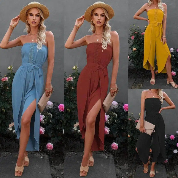 Γυναικεία καλοκαιρινή ένατη χαλαρή Jumpsuit φαρδιά παντελόνι πόδι