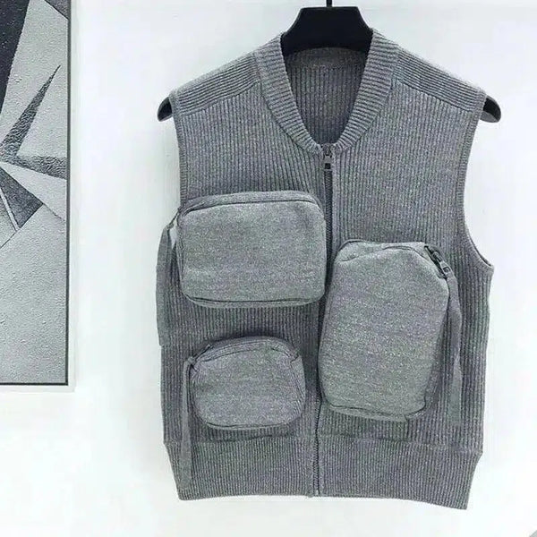 Πλεκτό γιλέκο με πολλές τσέπες για αποθήκευση