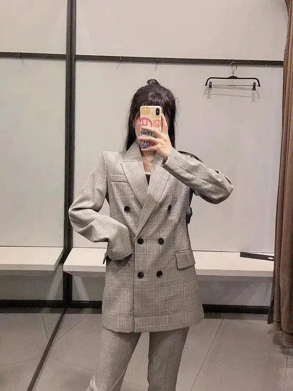 2785 μεγάλο σακάκι κοστούμι πλέγμα