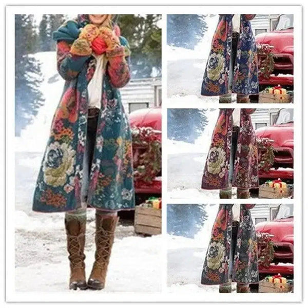 Περιγραφή προϊόντος: Γυναικείο δικαστικό στυλ τυπωμένο μεσαίου μήκους με κουκούλα χοντρό