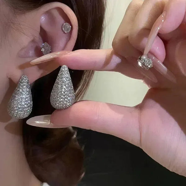 Κοσμήματα μόδας Vintage Chunky Dome Drop σκουλαρίκια για γυναίκες γυαλιστερό ανοξείδωτο χάλυβα παχύ ζιργκόν ένθετο δάκρυ σκουλαρίκια σκουλαρίκια γυναίκες