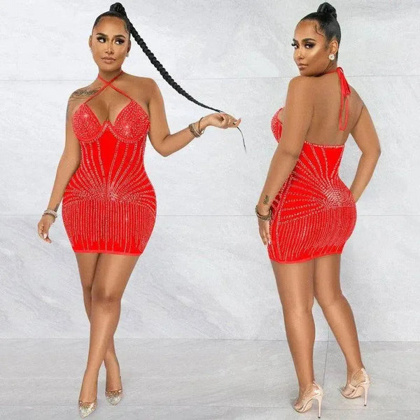 Σφεντόνα τυλιγμένο στήθος στρας προοπτική φούστα φόρεμα