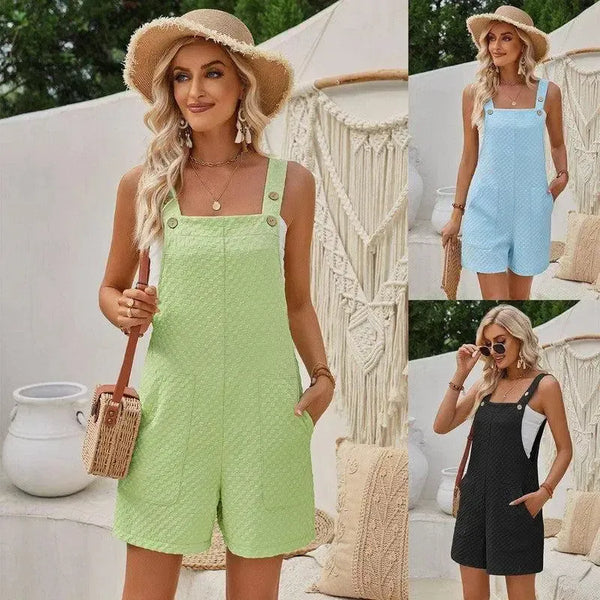 Γλυκιά βάφλα Jumpsuit κορίτσια καλοκαίρι αμάνικο κουμπί Σχεδιασμός ευθεία στερεό χρώμα φόρμες μόδας γυναικεία ρούχα