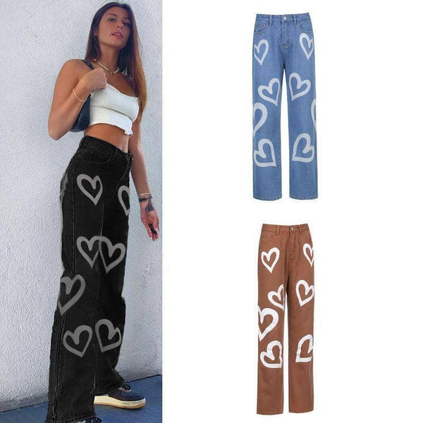 Τζιν με φαρδιά πόδια Γυναικείο Love Print Straight Loose Light Blue / 2XL